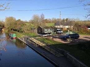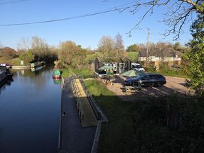 The car park adjacent to the mooring and shop has approximately 8 parking spaces with a small area along the frontage for 3 or 4 picnic tables for customer seating, as well as a wider section of towpath where more tables could be situated.
