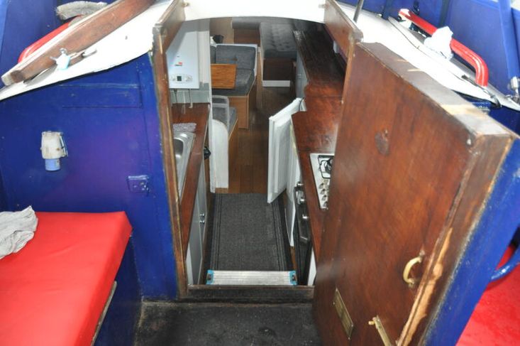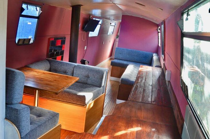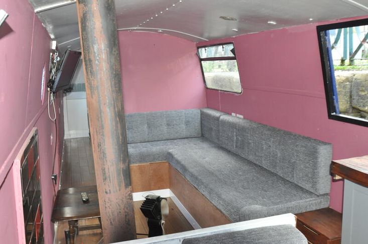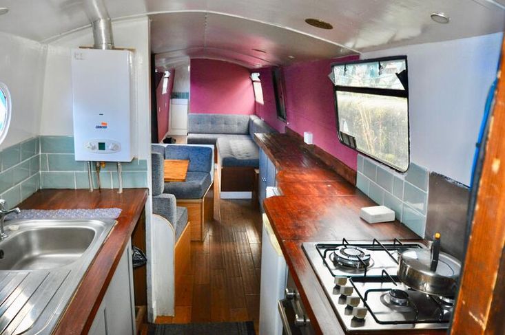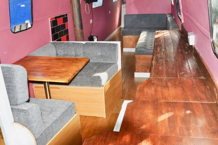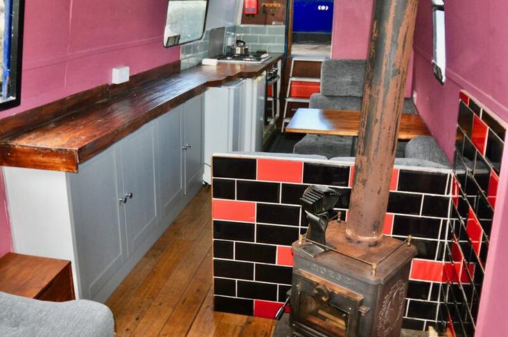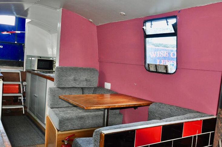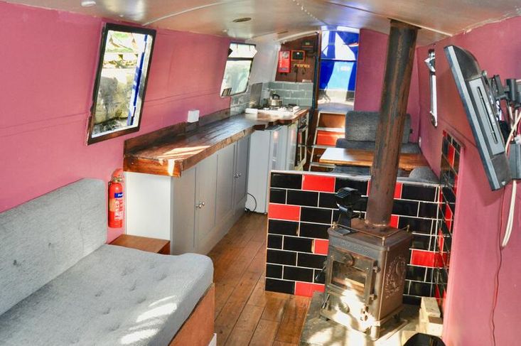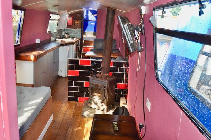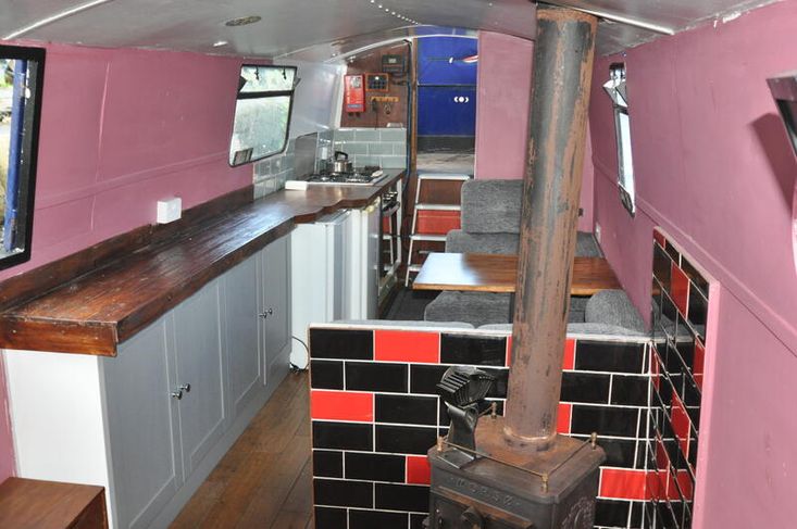 Imbolc is fitted out with a reverse layout. you enter the vessel through the steel aft door into the generous galley which has stainless steel gas hob with separate oven "Shoreline" 12v fridge leads to the ulna dinette. Moving forward is the saloon which has an "L" shaped dinette and Morso Squirrel log burner in a tiled hearth.