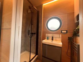 The houseboat is fully insulated to meet building regulations and is equipped with heating, ensuring a comfortable living environment year-round. It boasts an electric propulsion system and a mains water connection, and can also be used 'off-grid'.