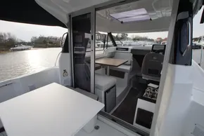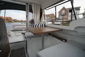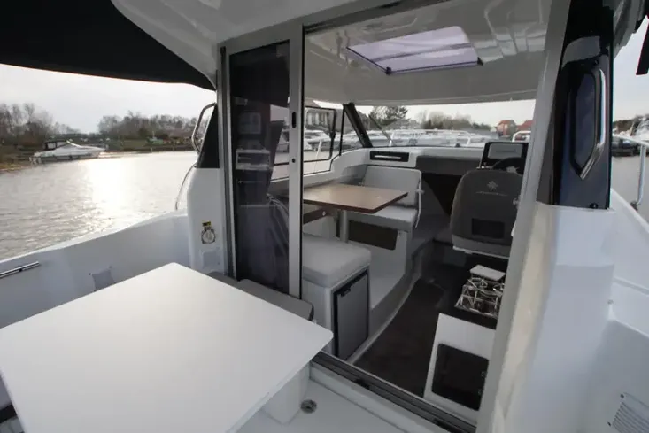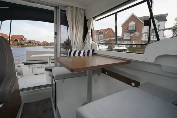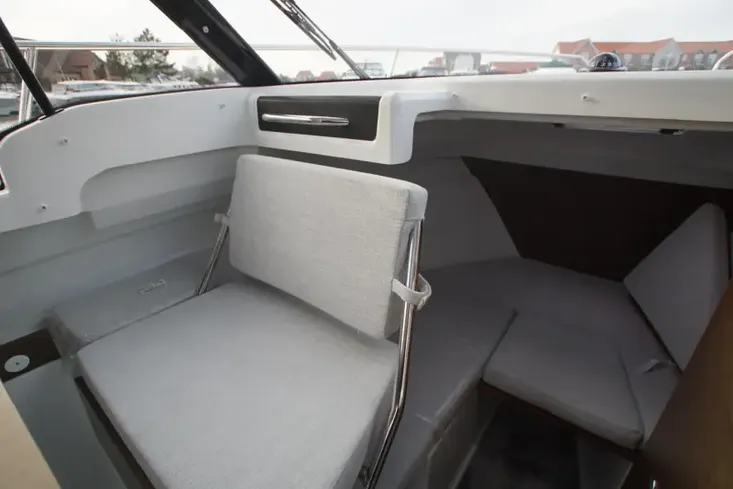 This vessel includes a Premiere Pack trim level including a moveable backrest for the co-pilot bench for optimal comfort and convenience, wheelhouse sliding hatch, aft cockpit bench cushions (seats and backrests, and sliding window.