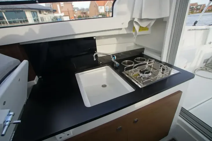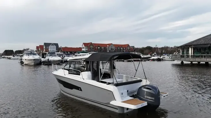 Saving of £17,000 on RRP! Jeanneau Merry Fisher 695 Series 2, ex-demo boat available with full factory warranties including 5 year Yamaha engine warranty and 3 years Jeanneau warranty. Reduced from £89,950 to £72,950 and equipped with a Yamaha F150 outboard. Boasting an excellent specification that includes bow thruster, Garmin chart plotter, bimini and cockpit enclosure, electric windlass and anchoring kit, ‘U’ shape cockpit seating, luxury galley, 22V shore power and battery charger, fridge and marine toilet and holding tank. Viewings 7 days a week. Delivery can be arrange throughout the UK *PART EXCHANGE CONSIDERED*