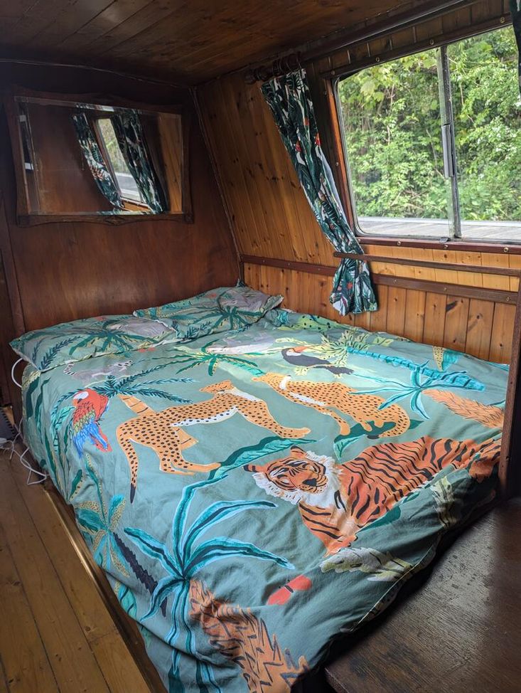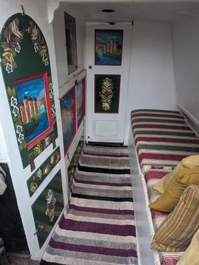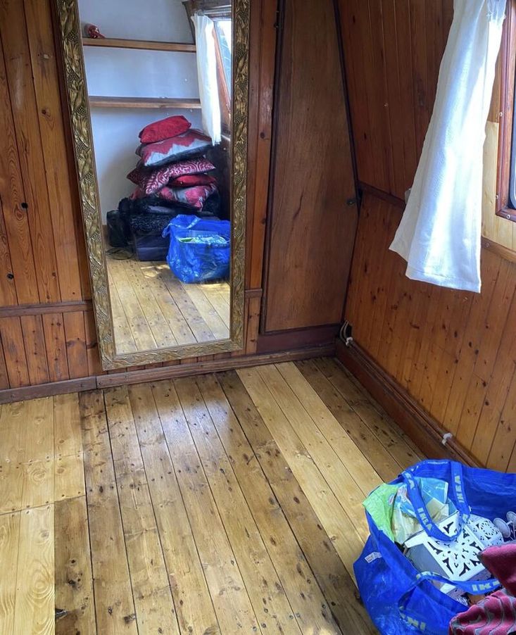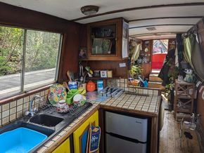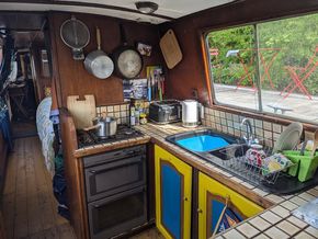 Light and airy with 10 large windows featuring an open plan living room/kitchen, bathroom and bedroom. There is also a second bedroom/ office and a rear cabin room behind the easy access engine room. The boat has a traditional feel with wooden flooring throughout and wooden panelling. All windows resealed in 2025. Wooden flooring refurbished throughout boat in 2022.