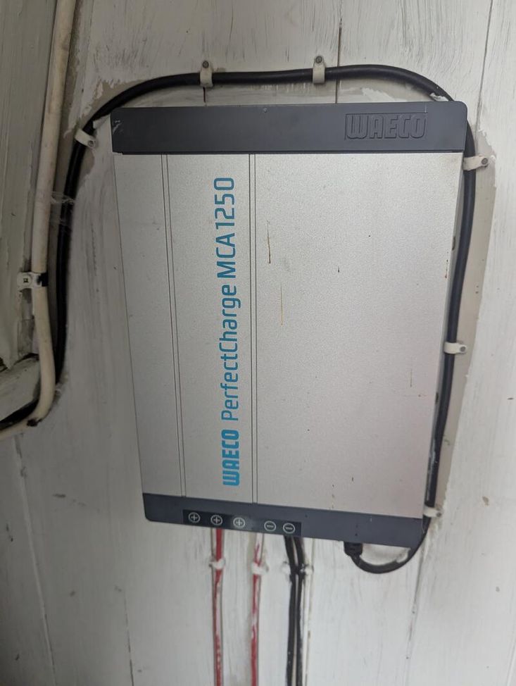 Powered by mains electric hookup, additional 3 leisure batteries for cruising. New starter battery installed in August 2025.
