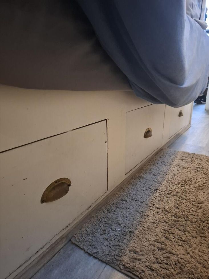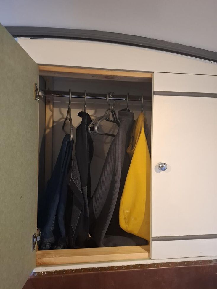 Bedroom Description: Small double bed with wardrobe space at rear of the bed, and storage drawers under bed.