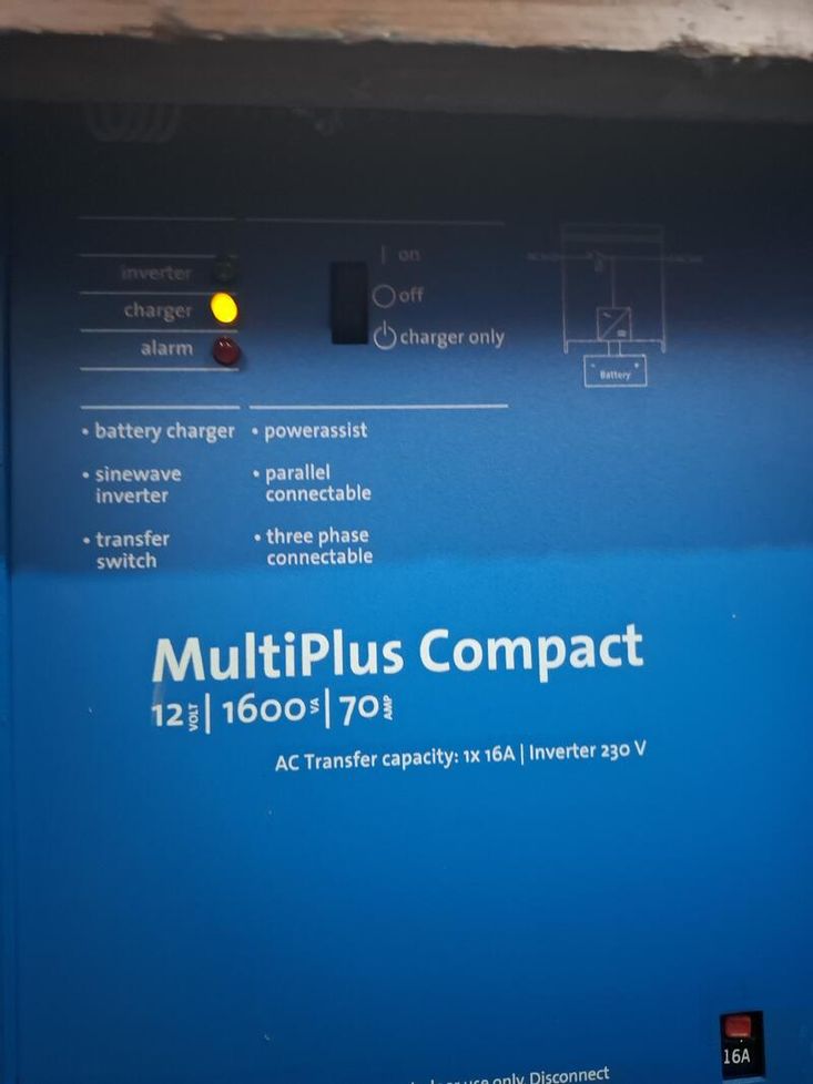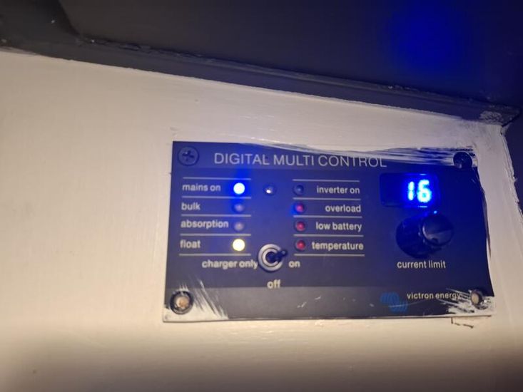 Electric Supply: Shoreline, 12v, solar panels x 4, 1.6kw Victron Inverter