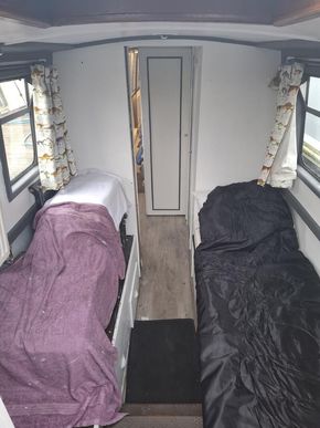 Bedroom 2 cabin Description: Two single beds with storage underneath.