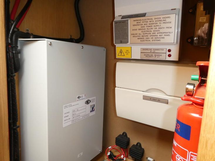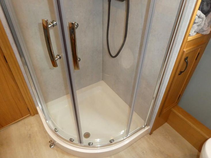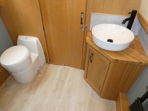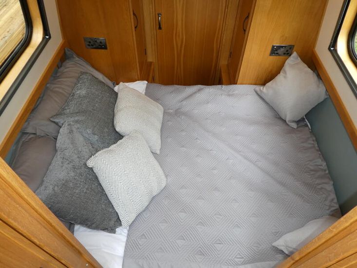 The bathroom is a walk through, followed by the stern day cabin/make up bedroom. As with the rest of the boat storage is generous.