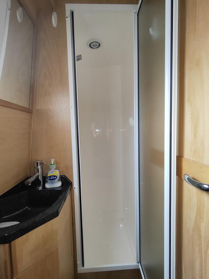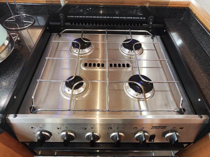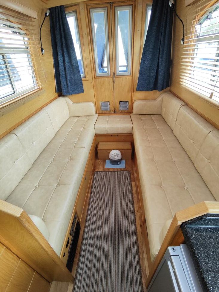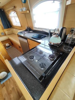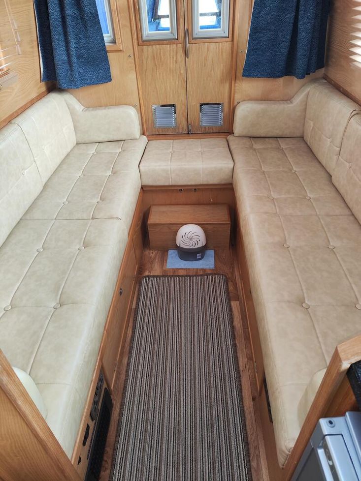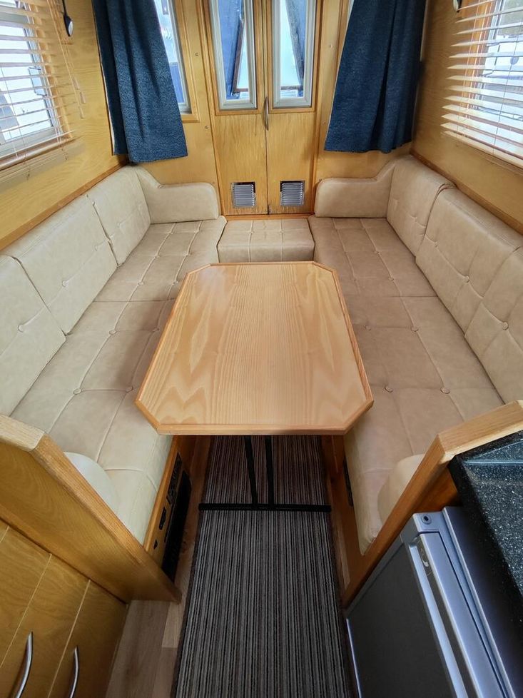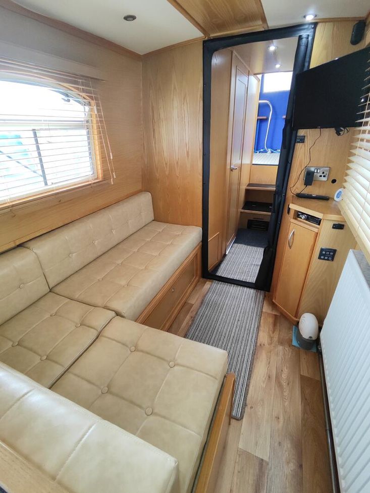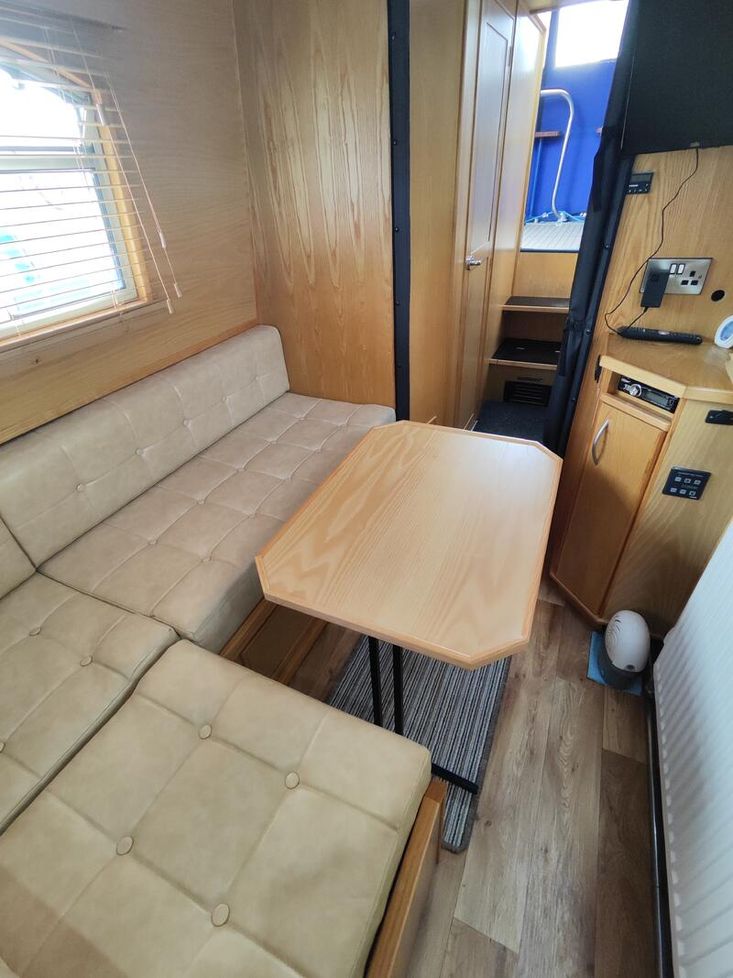 Additional features include plenty of 3-pin sockets and USB charging points, a roof hatch that floods the interior with natural light, and blinds for shade. Every detail has been thoughtfully designed, making this a truly exceptional boat.