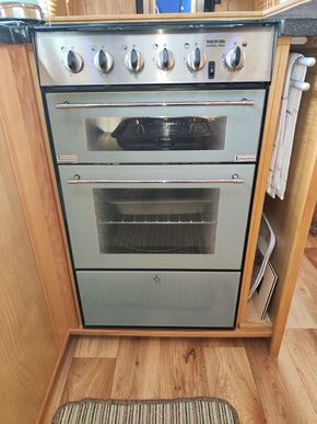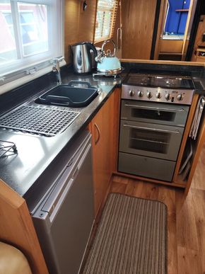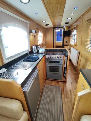 Well-equipped galley featuring a full-size cooker/hob, fridge, sink, and ample storage