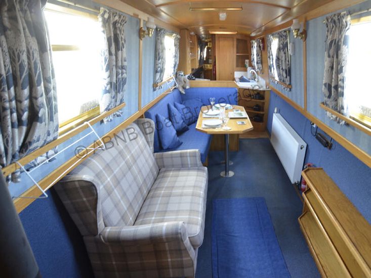 Bradypus is a semi-trad narrowboat, built in 2003 by Nonesuch Narrowboats, on a shell from Stenson Boatbuilders. Accommodation is for four people, with a permanent double berth at the aft, and a make up double on the L-shape dinette at the fore.