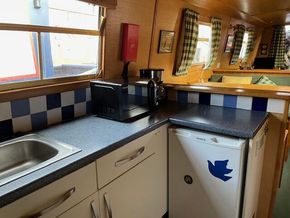 Galley: Stainless steel sink with drainer, Thetford cooker and hob, shoreline fridge with freezer box. Microwave. Coffee machine. Good storage cupboards,