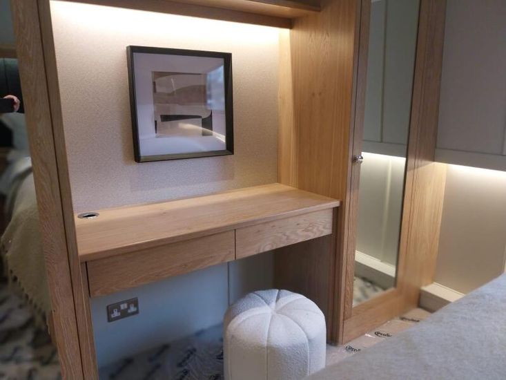 Full height wardrobes with hanging space and 3 drawer chest of drawers on port side